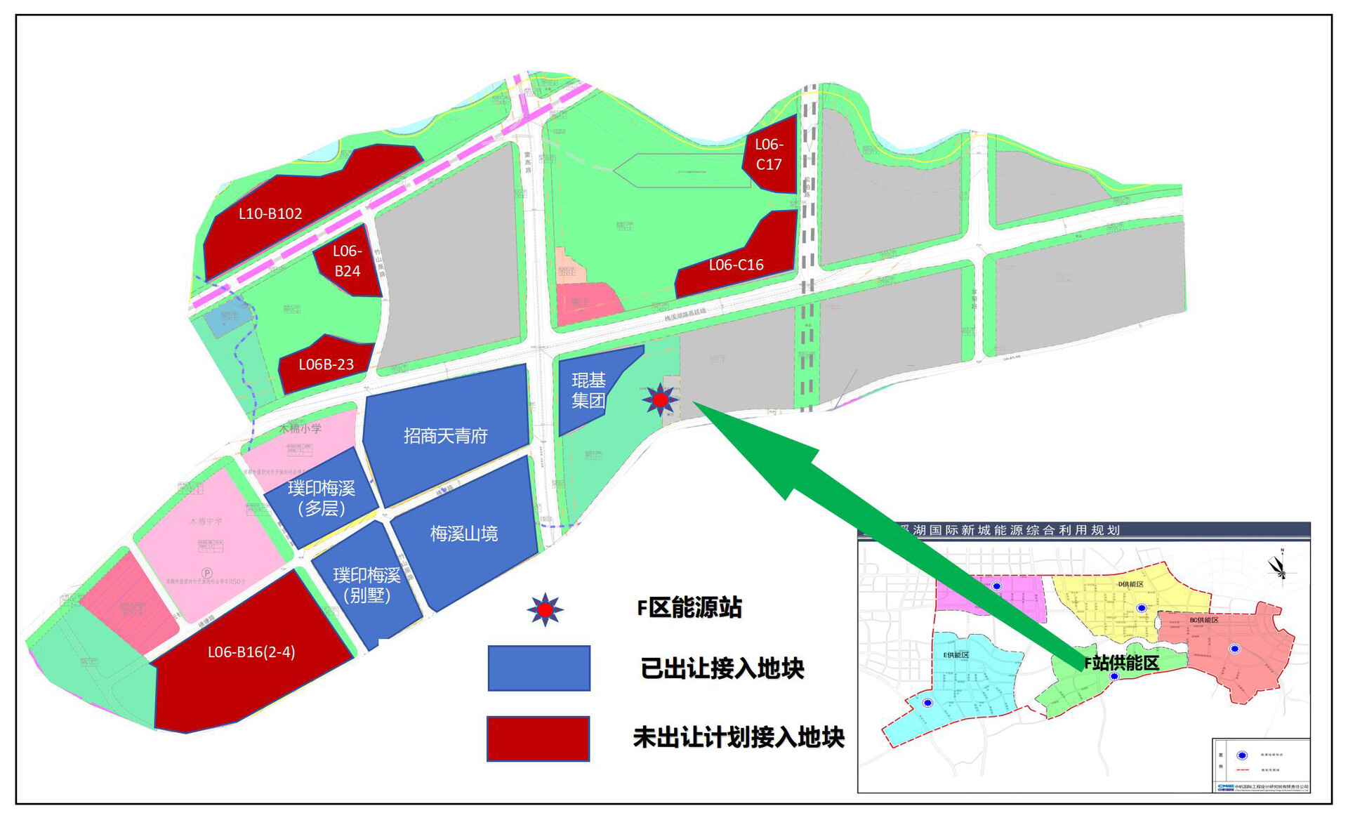 梅溪湖F區(qū)能源站位于泉水路與紫荊路交匯處,毗鄰長沙健康醫(yī)療大數(shù)據(jù)產(chǎn)業(yè)孵化基地,是梅溪湖片區(qū)規(guī)劃的5個(gè)區(qū)域能源站之一。項(xiàng)目采用“地面停車場+地下能源站”的立體空間布局,實(shí)現(xiàn)土地資源的高效復(fù)合利用。其供能范圍北抵中央綠心公園、龍王港,西至櫻花路,南達(dá)桃花嶺及象鼻窩,東到聽雨路,覆蓋接入建筑面積約47.0萬㎡,將為周邊居民、企業(yè)提供穩(wěn)定可靠的能源保障。