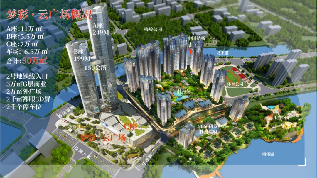 晟通國際總部中心位于湘江新區(qū)梅溪湖中央商務(wù)區(qū),在環(huán)湖路與連湖八路交叉口,是總建筑面積達(dá)30萬平方米的大型商業(yè)綜合體。項(xiàng)目規(guī)劃包含兩棟超高層塔樓、一棟集中商業(yè)體及連接廊道,集高端寫字樓、精品酒店、舒適公寓與購物中心于一體,未來將與毗鄰的318米高梅溪湖金茂大廈共同勾勒出嶄新的城市天際線。